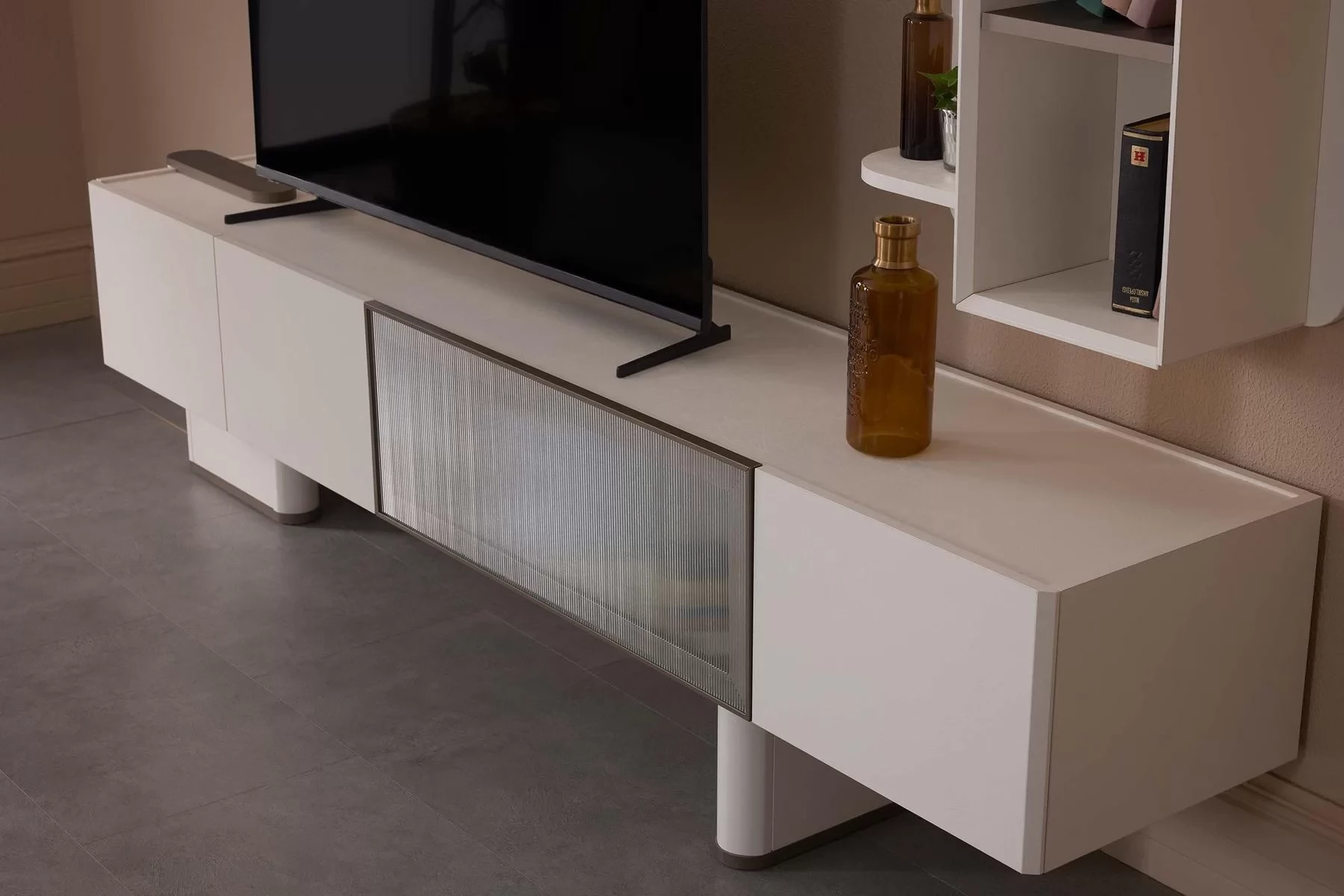 Elite Modern TV Ünitesi'nin tasarımı, modern estetiğin en güncel trendlerini yansıtır. Temiz hatları, minimalist görünümü ve seçkin malzeme kullanımıyla dikkat çeker. Evinizin dekorasyon stiline uyum sağlamak için çeşitli renk ve kaplama seçenekleri sunar (burada renk ve kaplama seçeneklerinden bahsetmiyoruz, sadece tasarımın esnekliğinden bahsediyoruz). TV üniteniz artık sadece bir fonksiyonel parça değil, aynı zamanda yaşam alanınızın dekorasyonunun önemli bir parçasıdır.